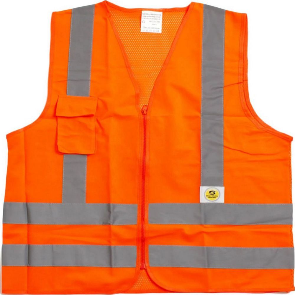 Vestimenta de proteção e segurança de alta visibilidade, tipo colete, confeccionada 100% em tecido sintético de poliéster, com fechamento em zíper (Tecido Plano) ou velcro (Tecido Telado). Possui faixas refletivas sendo duas verticais na área do tórax e costas e em formato X nas costas.