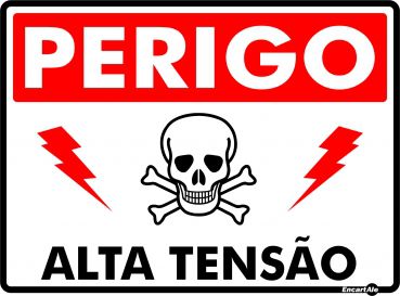 Placa feita em material poliestireno de 0,80mm para sinalizar perigo de morte por alta tensão.