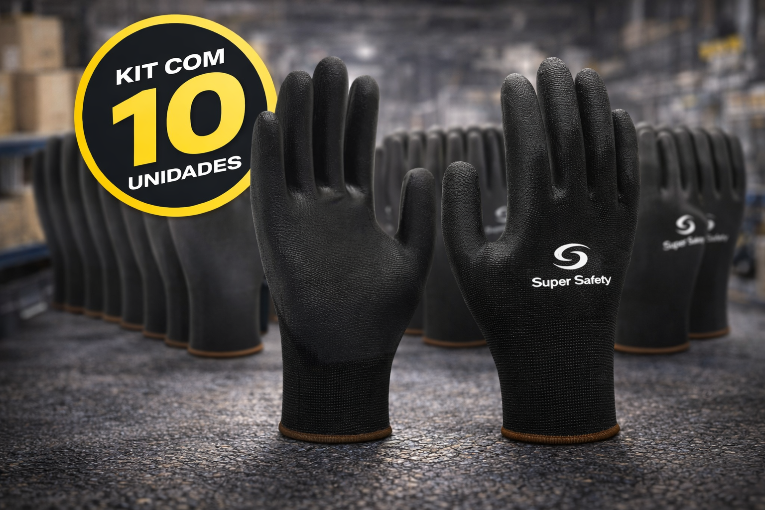 Luva Multitato Tricotada Revestida Com PU na Palma Super Safety SS1003 CA 32034