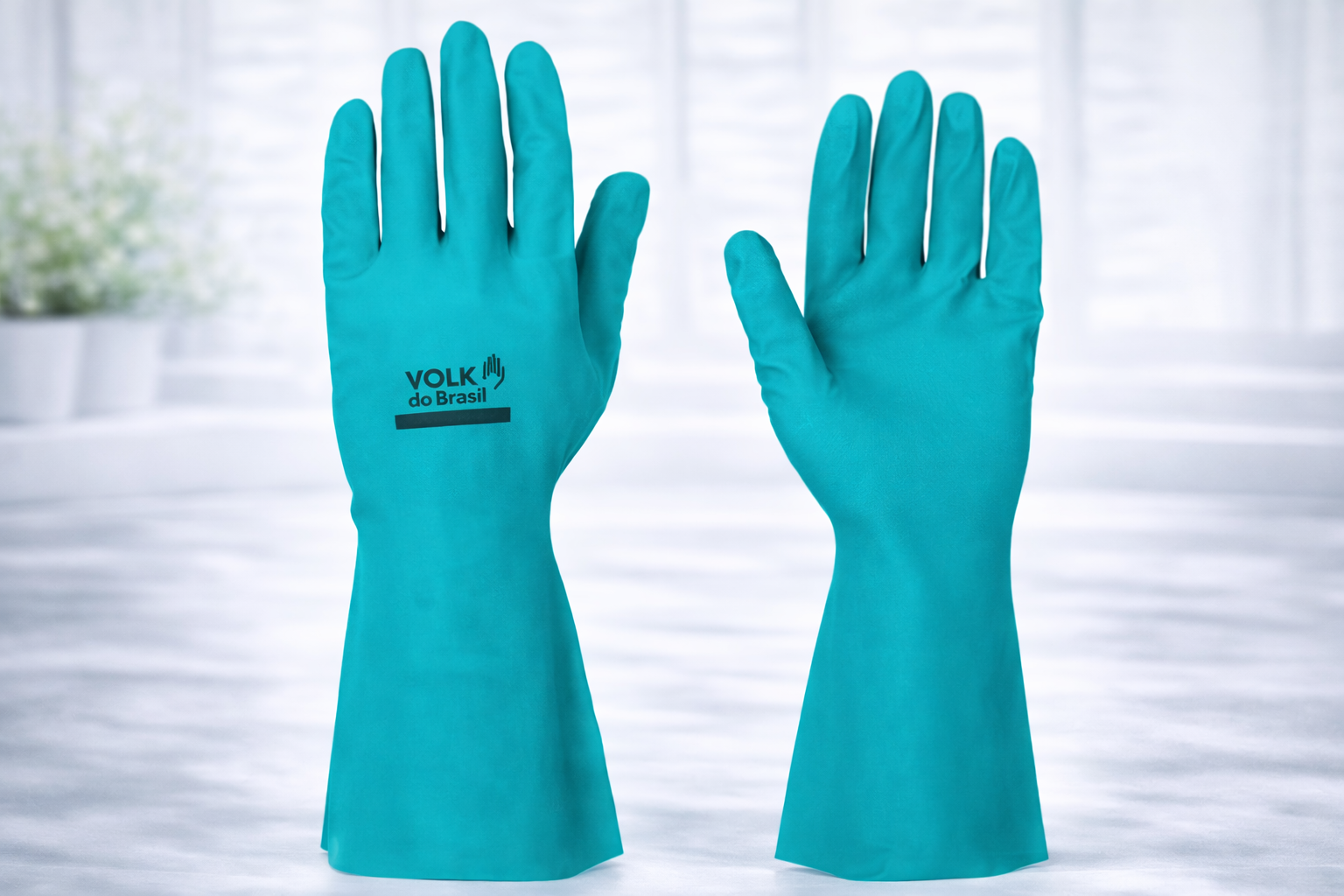 Luva de segurança confeccionada em nitrilo, relevo antiderrapante na face palmar e ponta dos dedos sem forro, além de um formato anatômico em punho reto. Possui resistência química e mecânica.