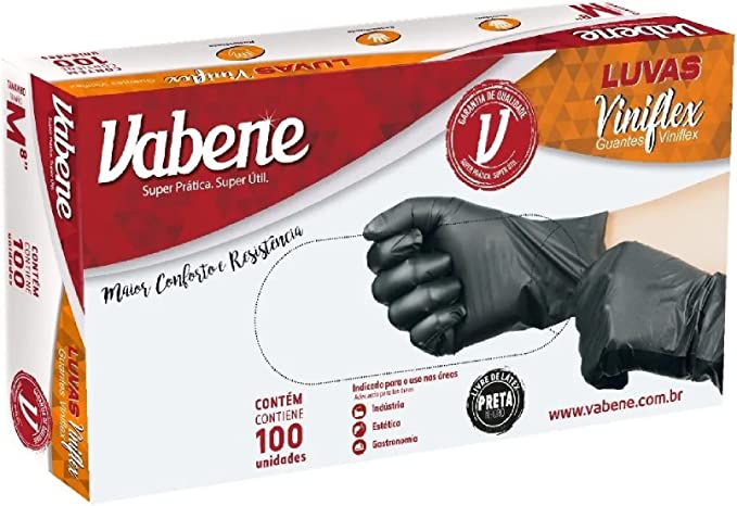 Luva Descartável Viniflex Preta Vabene Caixa com 100 Unidades