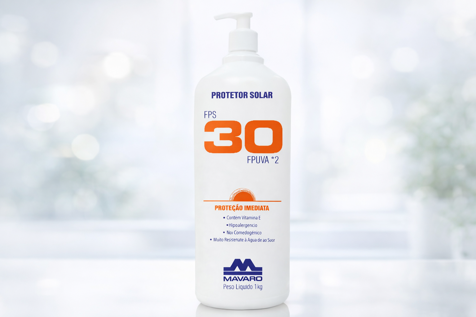 Protetor Solar FPS 30 eficaz contra a ação nociva das radiações UVA e UVB. Contém filtros solares com proteção de nível 30, protegendo a pele 30 vezes mais do que se o mesmo não tivesse sido aplicado. FPUVA 12.