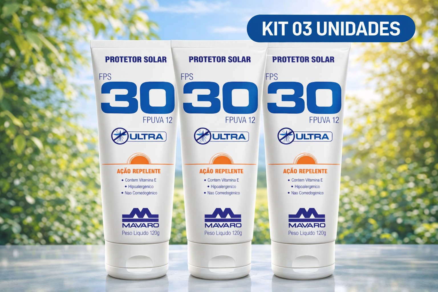 Protetor Solar com Repelente FPS 30 ULTRA é um protetor solar FPS 30 eficaz contra a ação nociva das radiações UVA e UVB. Contém filtros solares com proteção de nível 30, protegendo a pele 30 vezes mais do que se o mesmo não tivesse sido aplicado. Elaborado com repelente de insetos formulado e desenvolvido com o princípio ativo IR3535®, forma segura e eficaz na prevenção contra picadas de insetos. FPUVA 12.